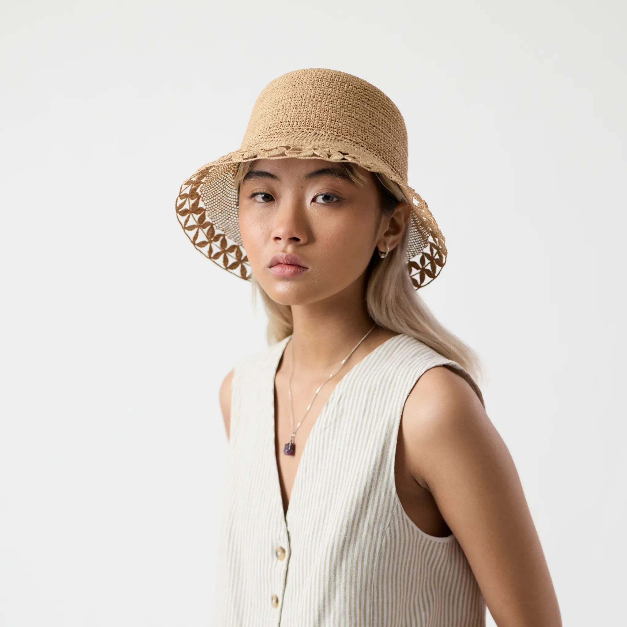 A one-of-a-kind bucket hat with its laced-edged brim, the BOKETY Hat by Tanora.