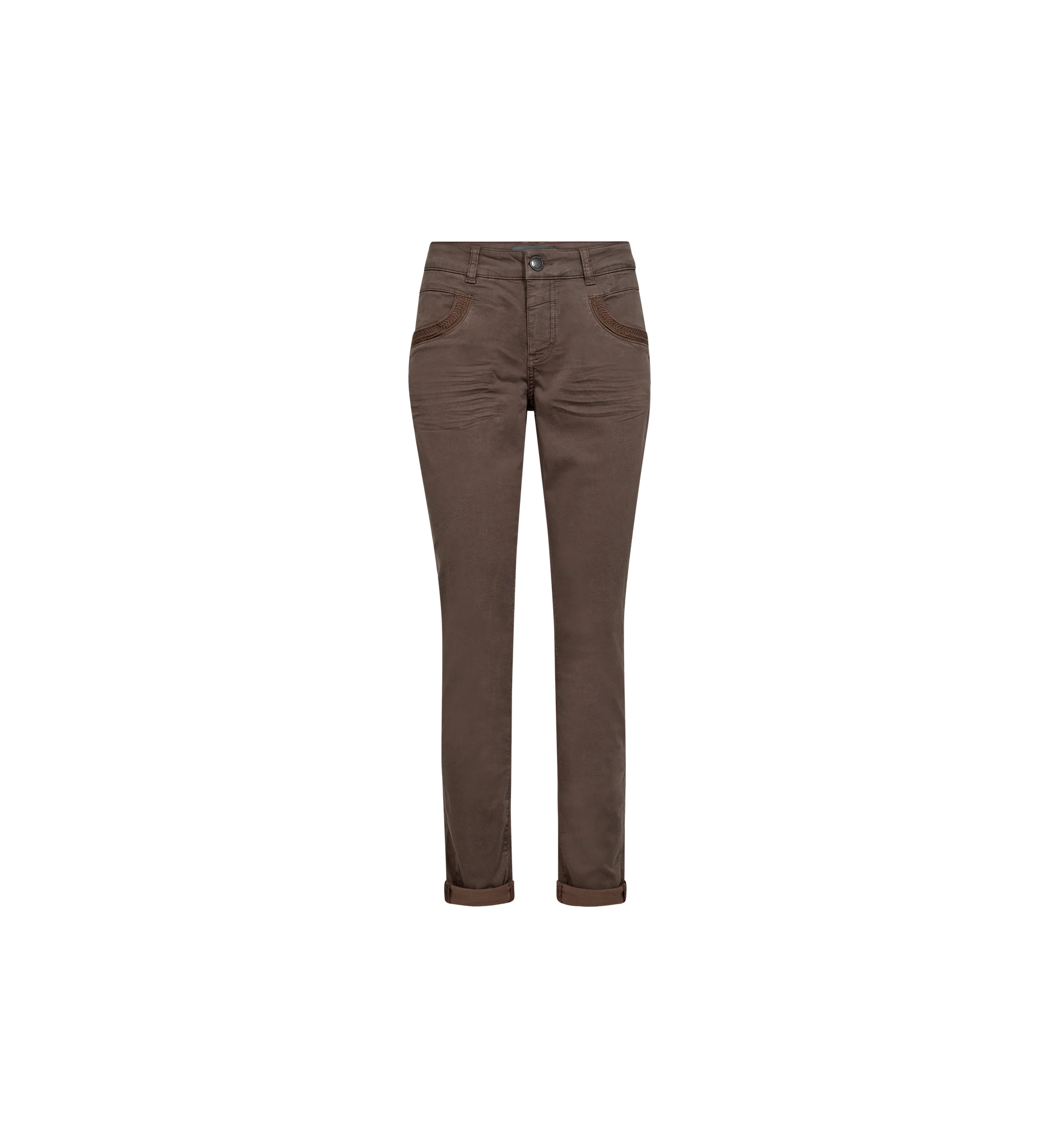 These mid-waist trousers feature a classic regular fit and a smooth button and concealed zip closure for a refined finish. Crafted from a soft, stretchy blend, they offer both comfort and a clean silhouette.