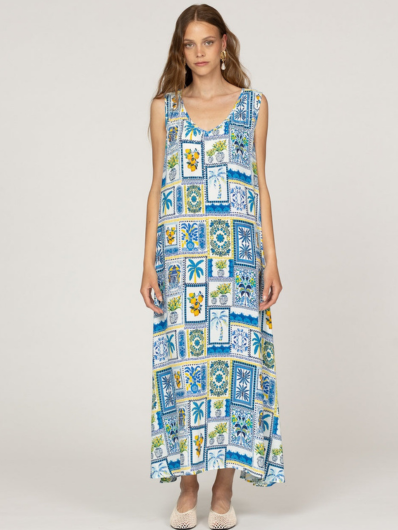 This flowing silhouette celebrates effortless elegance with its loose fit and exclusive all-over print that exudes summer.