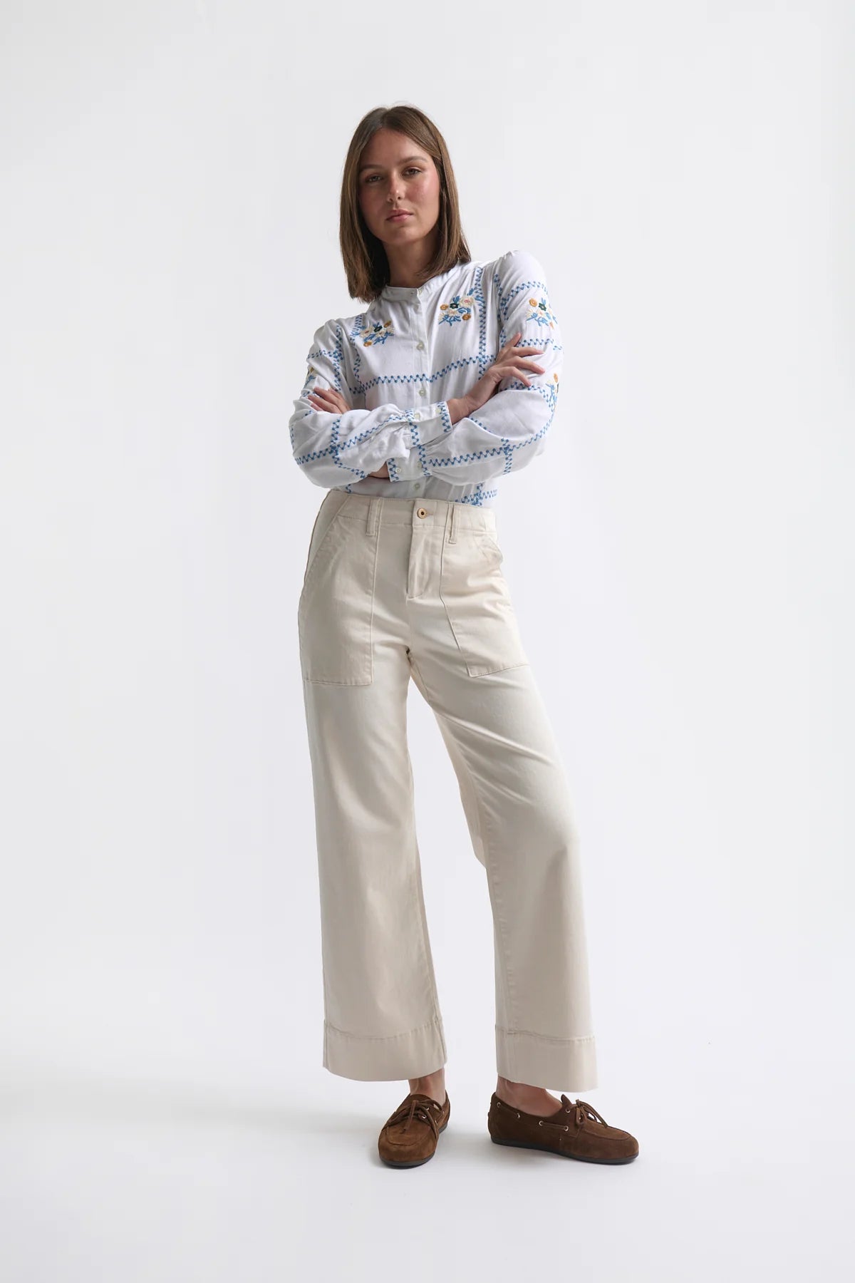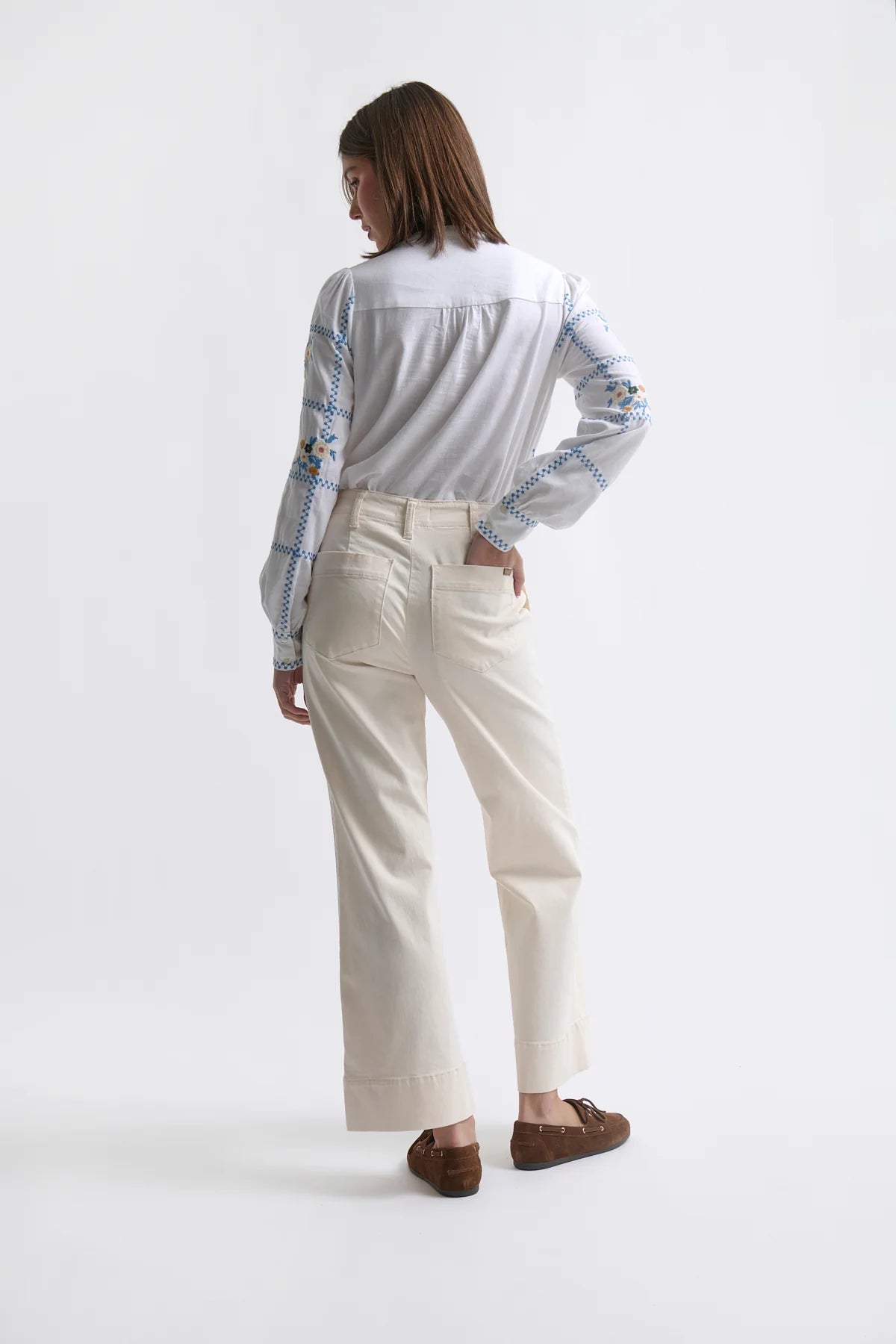 Are these the most comfortable denim utility pants? Kireina really worked the details on the new Celeste Pant in Ecru; featuring utility-style pockets, a fuller straight leg with a slight flare, and the perfect length to show off your winter boots, this one is sure to become high-rotation in your wardrobe.