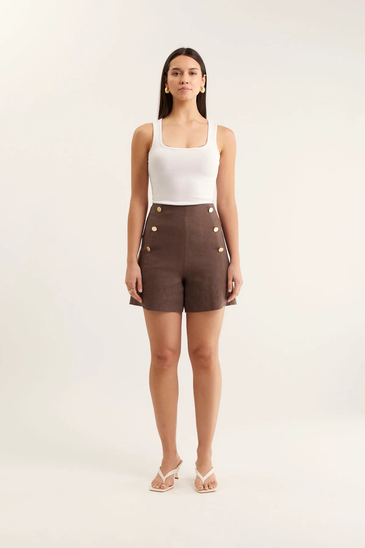 - Chocolate brown with gold feature buttons | Navy with gold feature buttons |