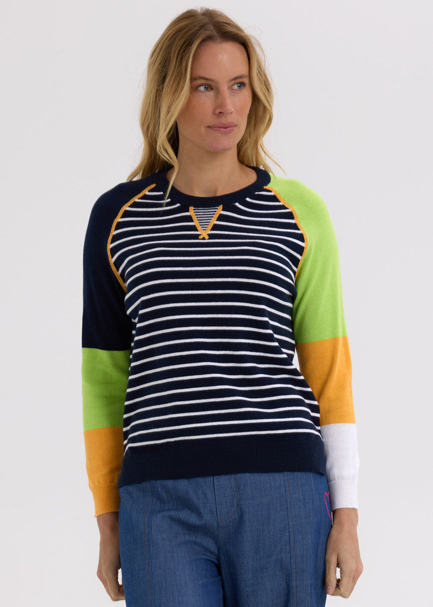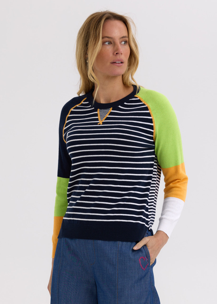 With a buttery soft fabrication and lovely lightweight feel, the Breton Jumper by Zaket & Plover features colourblock detail through the arms with classic round neckline, split hem, and contrast seam stitching.