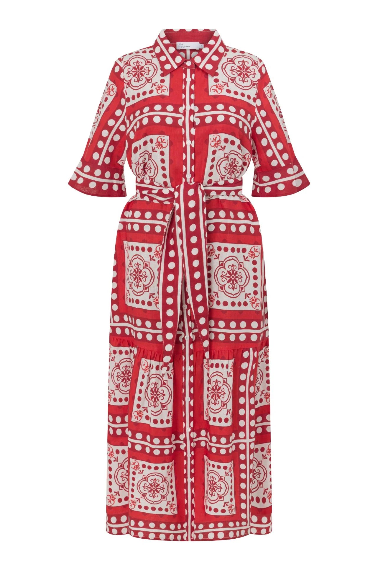 Crafted in linen, the Oasis Dress by Zoe Kratzmann features a tiered skirt, adding movement to the relaxed silhouette.