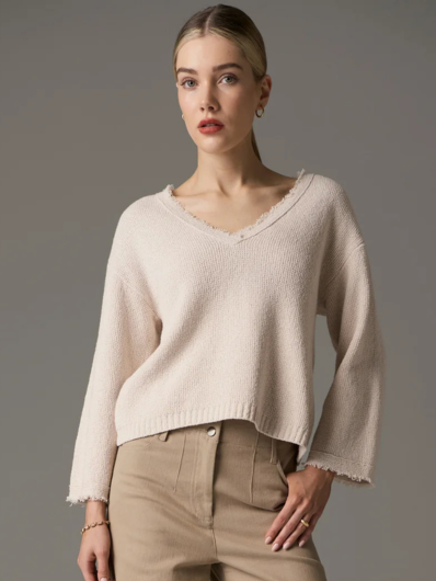 With a relaxed fit and wide sleeves, the Nara Fringe V Top is the elevated knit top you’ve been looking for.