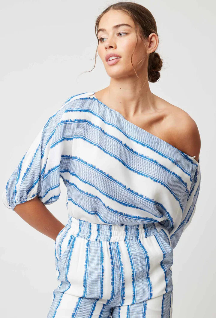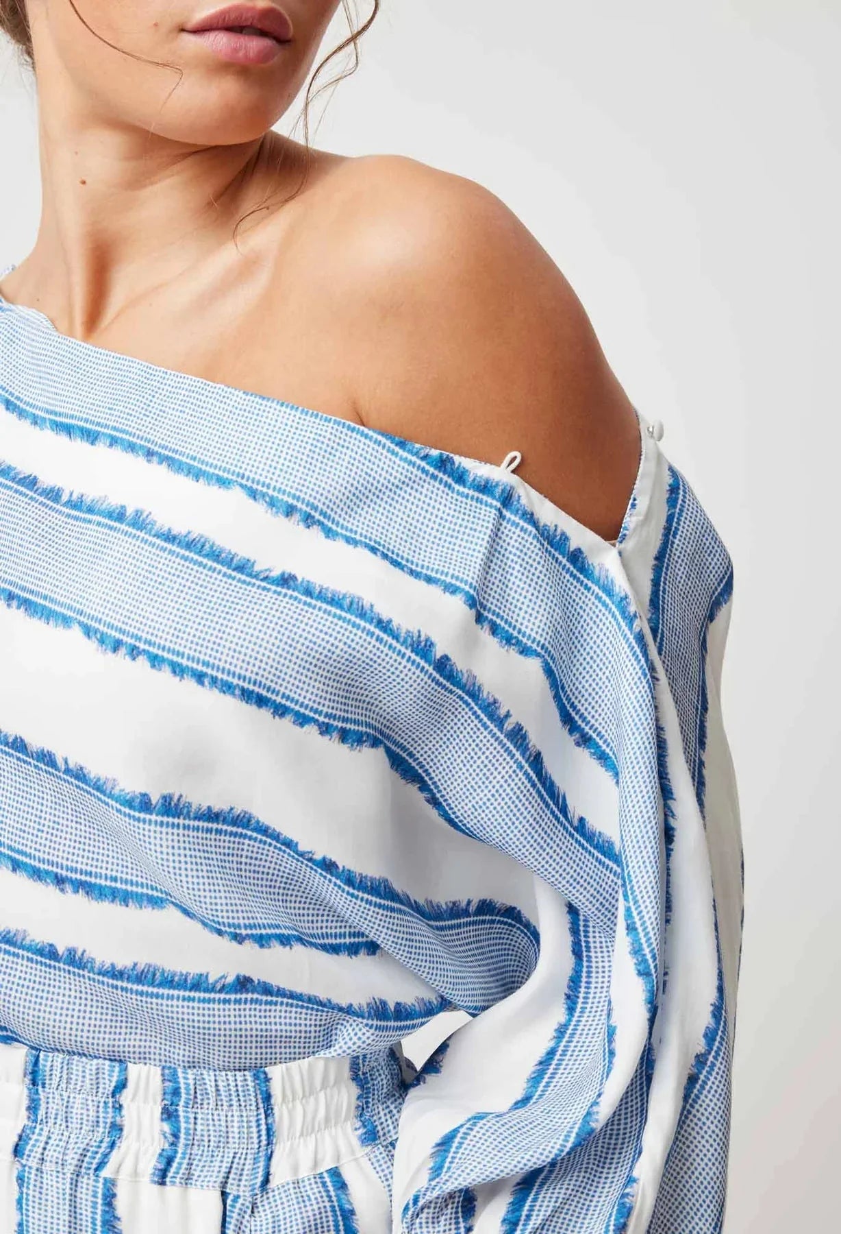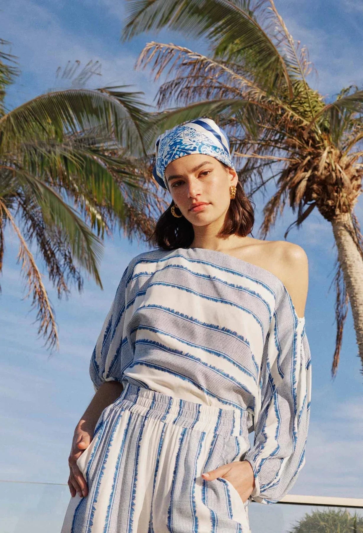 Introducing the Positano viscose Top in our captivating Sorrento Stripe print by Once Was, your new summer wardrobe essential. This top is thoughtfully designed for a relaxed fit, offering both style and comfort for warm-weather days.