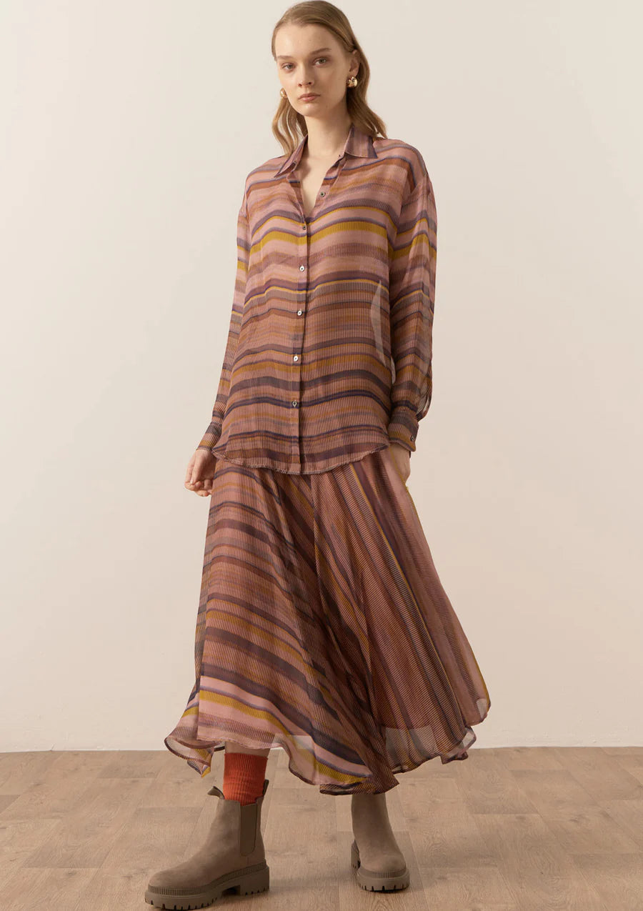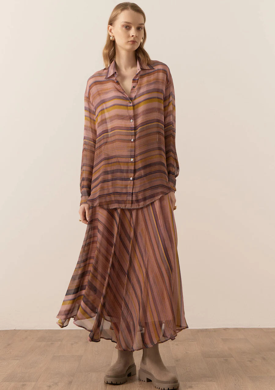 Made from a sheer silk with our exclusive Boulevard print, the Boulevard Silk Shirt by POL is an elevated style with a relaxed fit.