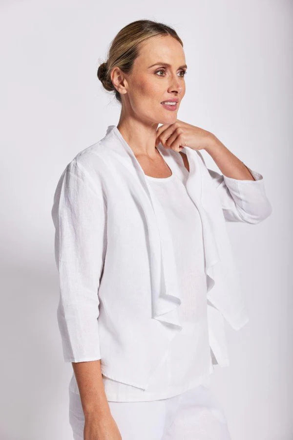 Introducing the 3/4 Sleeve Open Jacket in White by See Saw