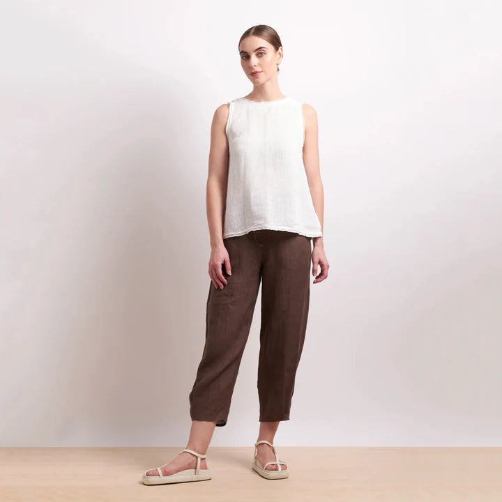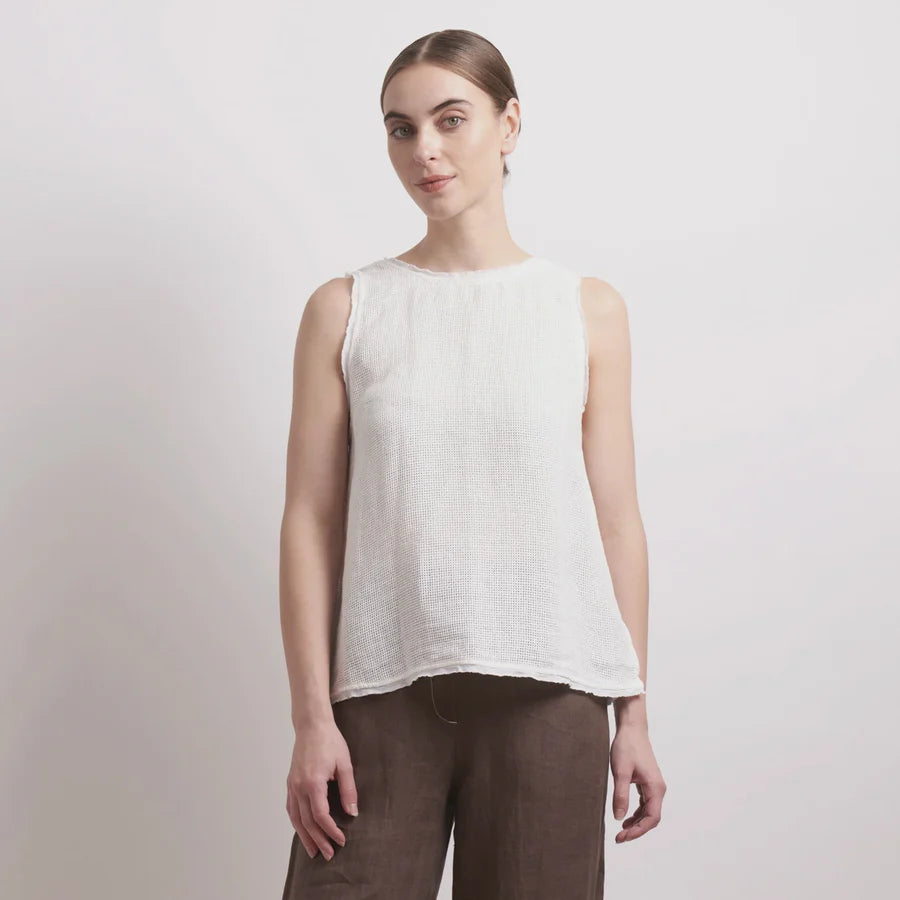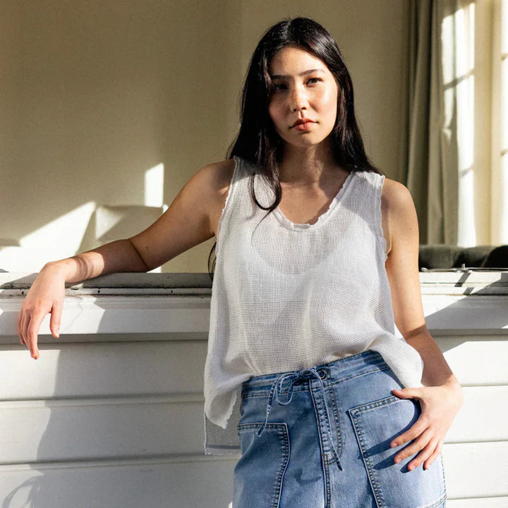 An elevated basic with a textured twist, the Mesh Tank in Vanilla by Neris is crafted from 100% linen for effortless style and breathability.