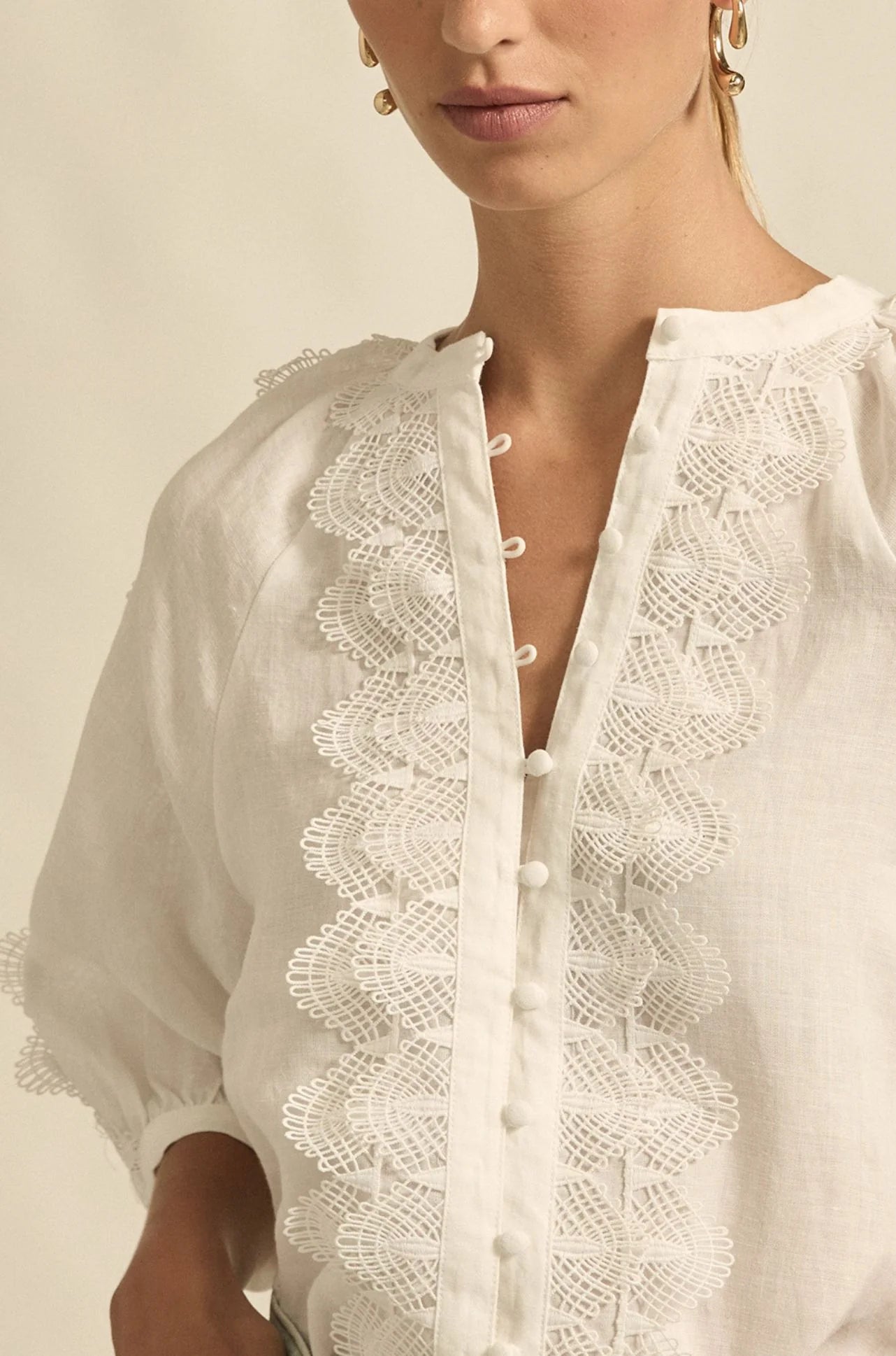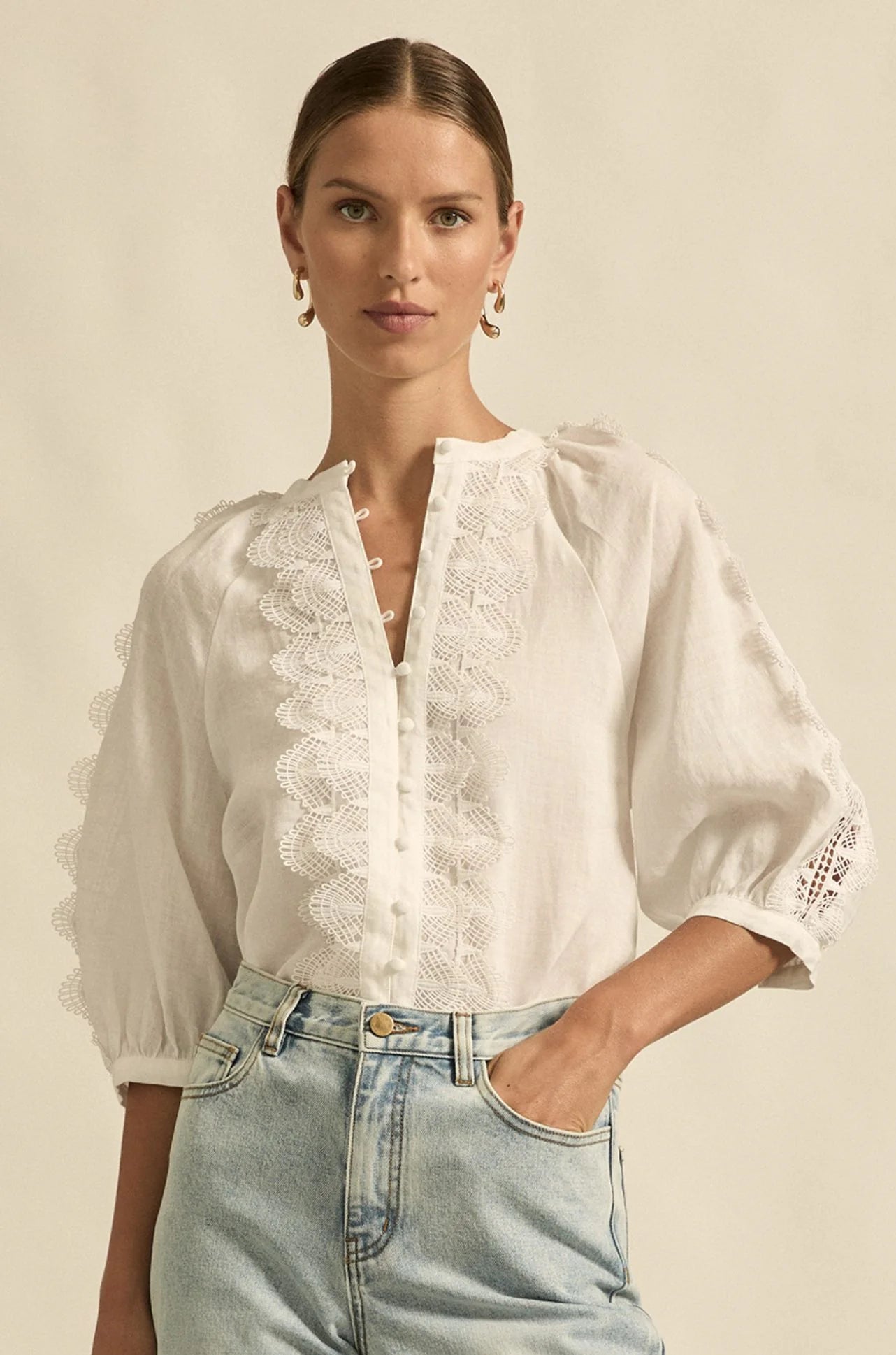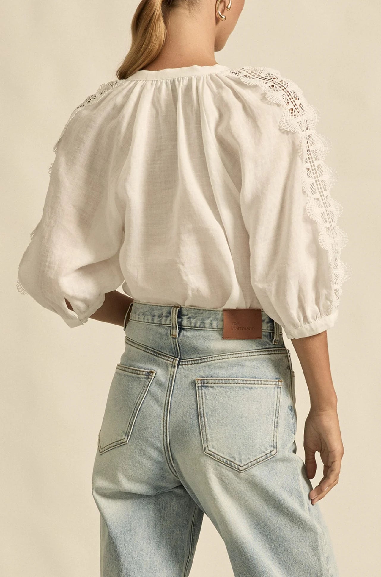 A romantic composition of texture and detail, the Bouquet Top in Porcelain by Zoe Kratzmann is a celebration of lace.
